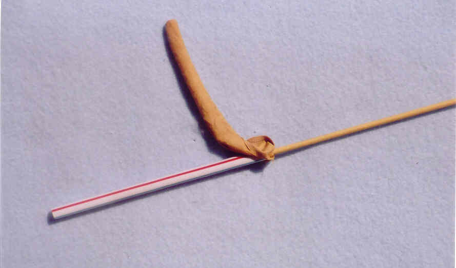 4. Insert the plastic straw into one arm going through the opening at the top.