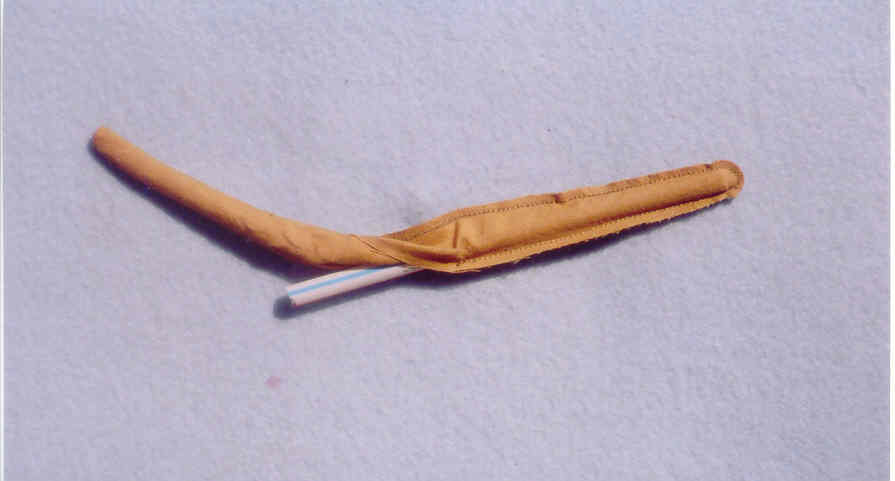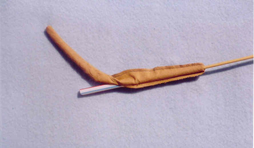 6. Keep pushing on wood skewer to keep pushing fabric arm into straw, all the way up to the opening.